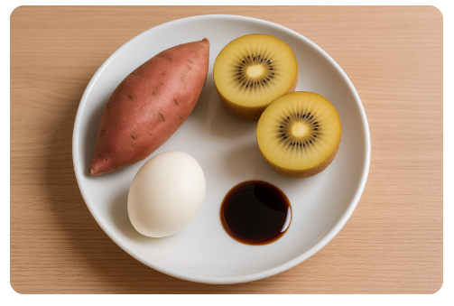 달걀 두 개, 고구마 한 개, 키위, 발사믹 소스로 구성된 아점 식단은 체지방 감소, 장 건강, 혈당 관리에 탁월한 효과를 제공한다. 50대 이상에게는 대사 건강과 포만감 유지를 위한 이상적인 선택이다. 간단하면서도 영양 균형이 잡힌 이 식단을 꾸준히 실천하며 운동과 수면을 병행하면 건강한 삶을 유지할 수 있다. 이 식단으로 활기찬 하루를 시작하자.