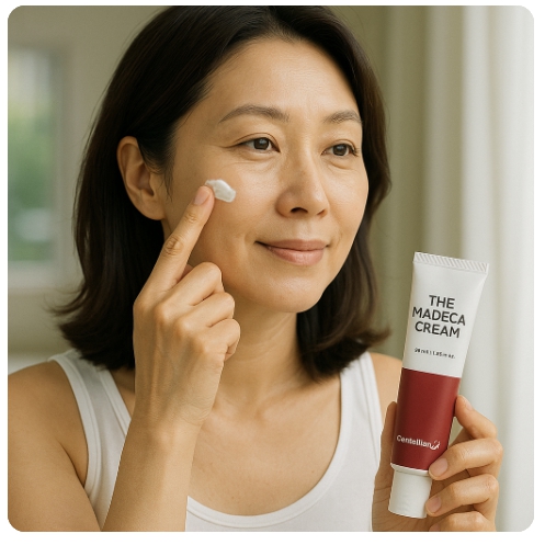 더마데카크림은 병풀 추출물을 핵심 성분으로, 피부 자생력을 높이고 탄력을 개선한다. 특히 50대 여성의 피부 건조함, 주름, 칙칙함을 해결하는 데 효과적이다.