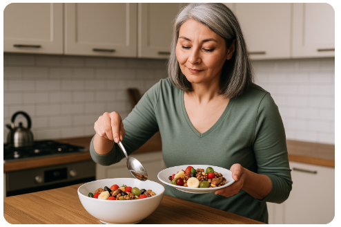 • 하루 예시: 아침 요거트+과일, 점심 생선+채소, 저녁 통곡물+견과류.